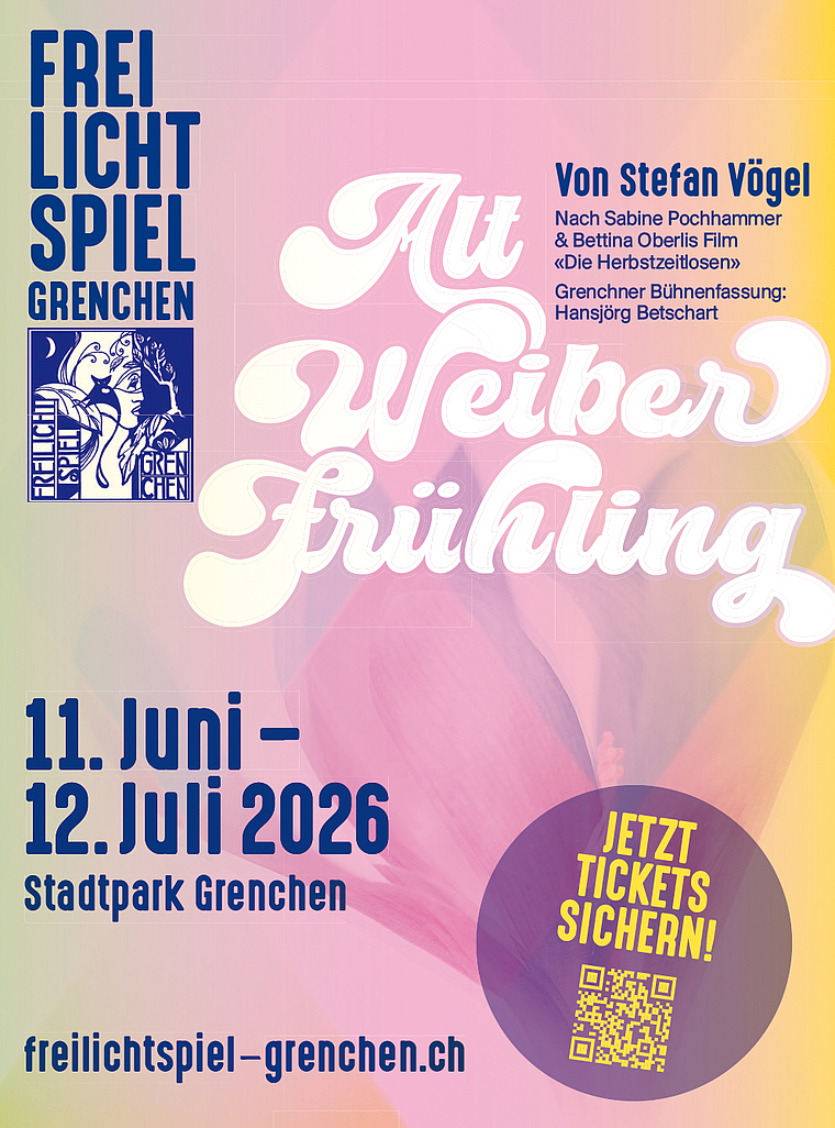 In gut zwei Monaten hebt sich – zumindest symbolisch – der Vorhang für die Freilichtaufführung «Altweiberfrühling» im Grenchner Stadtpark. Tickets für die Vorstellungen von 11. Juni bis 12. Juli 2026 sind bereits jetzt im Vorverkauf erhältlich – je früher, desto besser. Neben dem Online-Ticketing stehen neu auch zwei Vorverkaufsstellen in Grenchen zur Verfügung.
