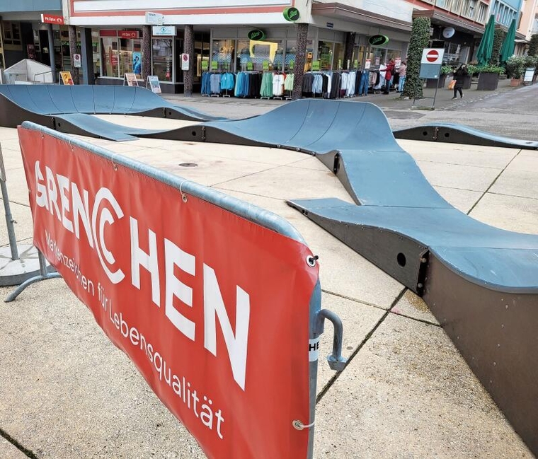Zum Frühlingsferienbeginn wird im Grenchner Stadtzentrum wiederum eine mobile Pumptrackanlage aufgestellt. Die Anlage auf dem Marktplatz kann vom nächsten Montag bis 22. April 2025 benutzt werden.